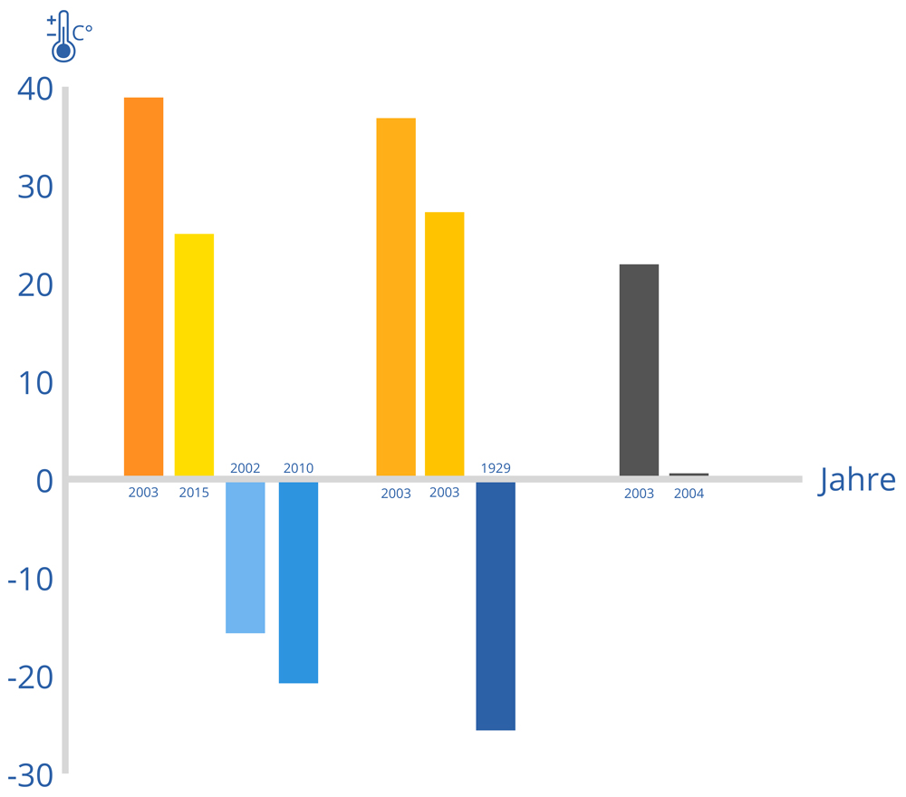 Wetterrekorde an der Wetterstation Maikammer (207 m ü. NN.) bzw. Wetterstation Kalmit (673 m ü. NN.)